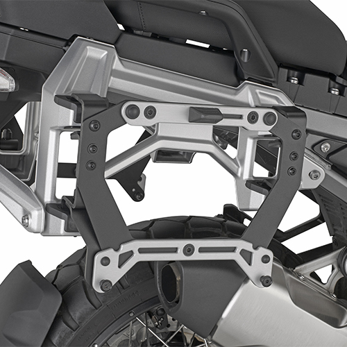 Specific black painted steel and anodised alluminium adapter to use a pair of side-cases MONOKEY® CAM-SIDE Trekker Outback on the original pannier holder, offered as an option by the manufacturer