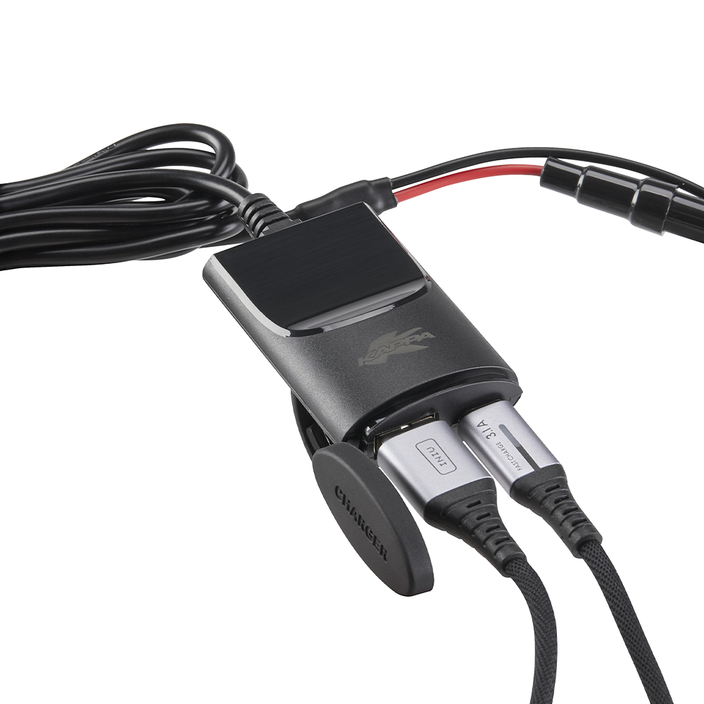 Ausgestattet mit einem 30W-USB-C-Anschluss und einem 18W-USB-A-Anschluss, ermöglicht es das gleichzeitige, schnelle und effiziente Laden von zwei Geräten – auch während der Fahrt.